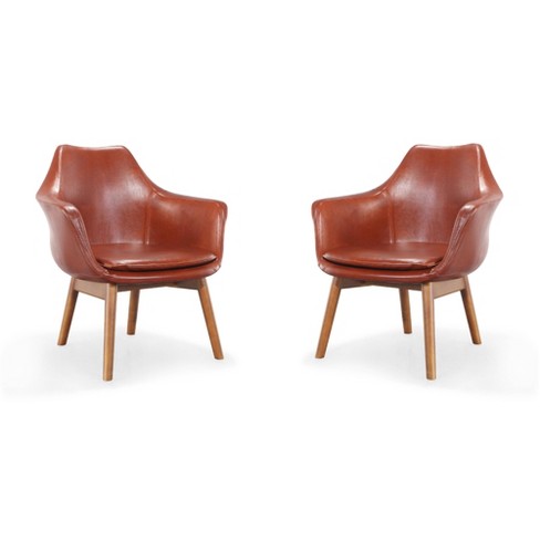 Mid Century Modern Debra Cognac Tan Leather Arm Chair Walmart Com